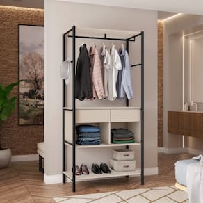 O Guarda Roupa Closet Solteiro com Pés 2 Gavetas Paris Artefamol é ideal para quem busca um design moderno e funcional. Este Módulo Closet Paris representa uma nova abordagem para roupeiros, sendo prático e contemporâneo. Ele ocupa menos espaço no ambiente e conta com ganchos para objetos, facilitando o armazenamento de diversos itens.
