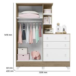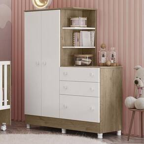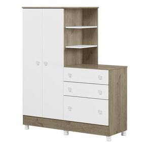 Guarda Roupa Com Cômoda Infantil Doce Sonho 2 Portas E 3 Gavetas Carvalho/branco Com Pés - Qmovi Carvalho/branco Guarda Roupa com Cômoda Infantil Doce Sonho 2 Portas e 3 Gavetas com Pés - Qmovi Pensado para quem precisa de otimização no espaço, o Guarda Roupa com Cômoda da linha Doce Sonho, é perfeito para acomodar os objetos do bebê com praticidade e comodidade. Organize tudo o que você precisa em um só lugar com este móvel moderno e funcional. ESPECIFICAÇÕES: - Estrutura em MDP - Pintura UV - 2 Portas - Dobradiças metálicas - 3 Gavetas - Corrediças metálicas - Cabideiro oblongo metálico - Puxadores em plástico poliestireno - Cômoda e nichos acoplados no guarda-roupabr /> - Pés em PVC - Maior organização e praticidade