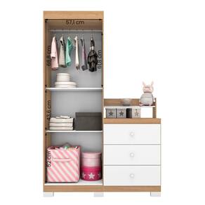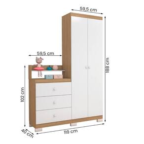 Conheça o nosso elegante guarda roupa com cômoda, perfeita para organizar o quarto das crianças com estilo e funcionalidade. Com um design moderno, ela conta com uma prateleira prática para deixar mais fácil a organização. Este móvel não só oferece amplo espaço de armazenamento, mas também adiciona um toque acolhedor e sofisticado à decoração. Transforme o quarto do seu pequeno em um espaço encantador e organizado com esta peça indispensável!