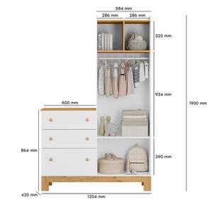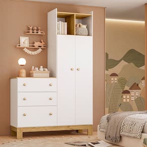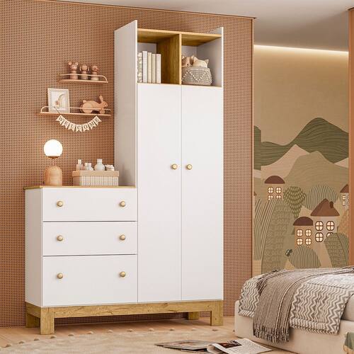 O Guarda Roupa com Cômoda Q Encanto Slim é perfeito para acomodar os objetos do bebê com praticidade e comodidade, com seu amplo espaço interno e composição de três gavetas.