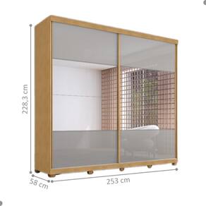 Feito em MDF 15mm.Possui 4 gavetas com corrediças telescópicas, 2 Portas deslizantes, 6 prateleiras e 4 cabideiro.