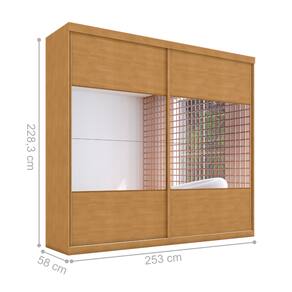 Feito em MDF 15mm.Possui 4 gavetas com corrediças telescópicas, 2 Portas deslizantes, 6 prateleiras e 4 cabideiro.