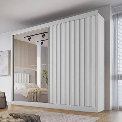 Particularidades do guarda-roupa: Características: - Ripado em MDF; - 100% MDF, chapas de 15mm; - Gavetas com corrediças telescópicas; - Cabideiros em alumínio; - Modulado para roupas longas; - Dobradiças modernas e reforçadas;
