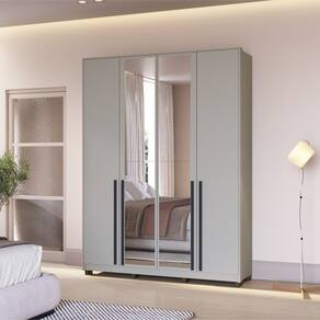 Com 4 portas amplas e 2 gavetas espaçosas com corrediças telescópicas, oferece excelente capacidade interna para roupas dobradas, sapatos e objetos pessoais. Os cabideiros em alumínio garantem resistência para peças maiores, enquanto os puxadores em MDF revestido agregam sofisticação ao visual. Para maior durabilidade, conta ainda com pés antiumidade que protegem o móvel no uso diário.