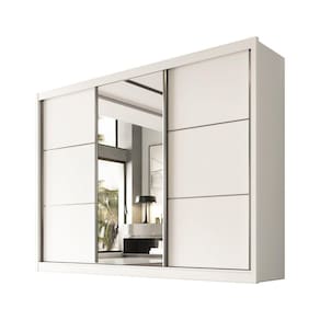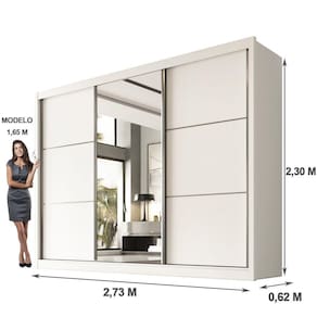 O Roupeiro Miami possui três portas, com ele você terá amplo espaço para organizar todas as suas roupas e acessórios de maneira prática e eficiente. A presença de uma porta com espelho adiciona um toque de elegância ao ambiente, além de facilitar na hora de se arrumar. E não podemos esquecer das seis gavetas, que são perfeitas para guardar seus itens. Com o roupeiro Miami, você terá um móvel funcional, bonito e de qualidade, que certamente vai complementar a decoração do seu quarto. Acabamento da Prateleira: Pintura Texturizada UV Escala de Brilho da Prateleira: Semi-Fosco Possui Cabideiros: 02 Acabamento da Gaveta: Pintura Texturizada UV Possui Organizador de Gaveta: Não Acabamento da Porta: Pintura Texturizada UV Escala de Brilho da Porta: Brilhante Altura do Espelho: 206 Ambiente Principal: Quarto Complexidade da Montagem: Média: pode ser montado por mais de uma pessoa e/ou necessite de maior conhecimento para montagem Cor: Branco Cor do Produto: Branco Escala de Brilho: Brilhante Espessura do Espelho: 3 Formato do Espelho: Retangular Gaveta com Chave: Não Itens Inclusos: 1 Guarda Roupa, Manual de Montagem e Kit Ferragens Largura do Espelho: 85 Manual de Montagem e Instalação: https://cdn2.madeiramadeira.com.br/atributo/d-doro-moveis/1367966-manual-de-montagem-gr-los-angeles.pdf Material da Gaveta: MDF Material da Porta: MDF Material da Prateleira: MDF Material Principal: MDF Necessita Montagem: Sim Origem do Produto: Nacional Peso: 243 Peso Máximo por Gaveta: 5 Peso Máximo por Prateleira: 3 Possui Calceiros: 01 Possui Espelho: Sim Possui Pés: Não Possui Portas: 03 Possui Prateleiras: 10 Quantidade de Espelho: 01 Recomendações de Uso, Manutenção e Limpeza: Pano levemente umedecido e pano seco. Não utilizar produtos de limpeza. Sistema de Montagem: Parafusos e cavilhas. Tipo de Corrediça da Gaveta: Metálica Telescópica Tipo de Dobradiça/Corrediça da Porta: Aço Tipo de Fixação do Espelho: Molduras Tipo de Gaveta: Interna Tipo de Guarda-Roupa: Casal Tipo de Puxador da Gaveta: Externo Tipo de Puxador da Porta: Embutido