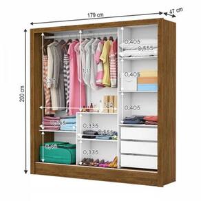Seu interior conta com excelente distribuição, incluindo 3 gavetas espaçosas, ideais para armazenar roupas dobradas, e acessórios. O espaço para cabides permite acomodar diversas peças penduradas, mantendo tudo organizado e bem conservado.