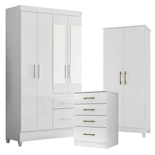 Guarda Roupa com Espelho Infantil Madri com Cômoda MS913 e Armário Multiuso Jade Branco Brilho Moval