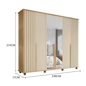 O Guarda Roupa Com Espelho Ripado França 6 Portas – RV Móveis com visual moderno e elegante, encherá seu dormitório de sofisticação, e claro, organização. Enquanto o detalhe ripado agrega valor ao design, as 6 portas e 3 gavetas com corrediças telescópicas, têm espaço suficiente para organizar os pertences de um casal. Os cabideiros e calceiros em Alumínio com 10 nichos internos e 4 prateleiras. dão força e resistência a peça. Esse modelo ainda conta com puxadores resistentes inteiriços em MDF.Dimensões do Produto Montado:Altura: 231cmLargura: 240cmProfundidade: 57cmObservações:– Calceiro e Cabideiro em Alumínio– 3 Gavetas com Corrediças Telescópicas– Amplo espaço interno– Acabamento interno na cor do Produto– 4 Prateleiras– 10 Nichos internos– 2 Maleiros– Puxadores exclusivos em MDFMarca: RV MóveisModelo: FrançaReferência: CD87COATENÇÃO: Não nos responsabilizamos pela montagem deste produto. Aconselhamos a contratação de um profissional.