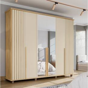 O Guarda Roupa Com Espelho Ripado França 6 Portas – RV Móveis com visual moderno e elegante, encherá seu dormitório de sofisticação, e claro, organização. Enquanto o detalhe ripado agrega valor ao design, as 6 portas e 3 gavetas com corrediças telescópicas, têm espaço suficiente para organizar os pertences de um casal. Os cabideiros e calceiros em Alumínio com 10 nichos internos e 4 prateleiras. dão força e resistência a peça. Esse modelo ainda conta com puxadores resistentes inteiriços em MDF.Dimensões do Produto Montado:Altura: 231cmLargura: 240cmProfundidade: 57cmObservações:– Calceiro e Cabideiro em Alumínio– 3 Gavetas com Corrediças Telescópicas– Amplo espaço interno– Acabamento interno na cor do Produto– 4 Prateleiras– 10 Nichos internos– 2 Maleiros– Puxadores exclusivos em MDFMarca: RV MóveisModelo: FrançaReferência: CD87COWATENÇÃO: Não nos responsabilizamos pela montagem deste produto. Aconselhamos a contratação de um profissional.