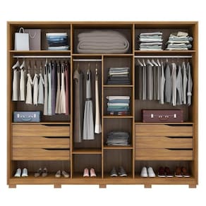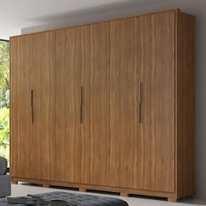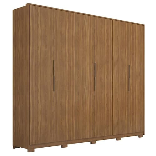 Perfeito para decorar seu dormitório, o Guarda Roupa Atrice vem com amplo espaço interno devido as repartições serem bem distribuídas, esse roupeiro conta com 6 gavetas, 3 cabideiros. 4 prateleiras, lugares para organizar seus sapatos e um grande maleiro para deixar os enxovais arrumados e também 6 portas com abertura convencional facilitando o dia a dia e o design dos pés dá aquele toque de modernidade e elegância ao ambiente de descanso.