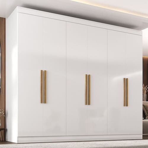 Durabilidade é a palavra para o guarda roupa Paris 6 portas, desenvolvido em material ecologicamente correto, o produto possui: