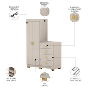 As prateleiras móveis permitem total personalização de acordo com suas necessidades, proporcionando flexibilidade no uso do espaço. Essa característica torna o Guarda Roupa Cômoda ainda mais prático, permitindo ajustar o ambiente do Quarto de acordo com a quantidade de itens e a forma de organização desejada.