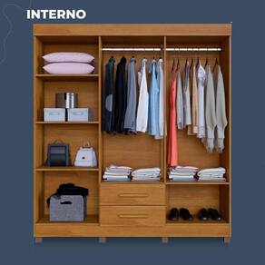 Guarda Roupa Copacabana New é produzido em chapa de 15 mm que garante robustez e maior vida útil, contém 6 portas, 5 prateleiras, 2 gavetas com corrediças telescópica, cabideiro em alumínio, espaço para longos, pés incluso no produto e puxadores modernos, é um ótimo custo benefício.