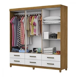 Guarda Roupa D22 6 Portas 6 Gavetas Com Pés Carioca Móveis Freijó Com Branco
