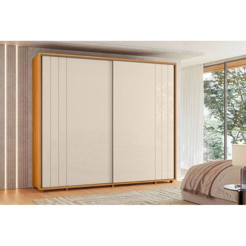 Guarda-roupa Dalí com escada 100% MDF ripado 2 portas e 8 gavetas - Cinamomo Off White - Madetec