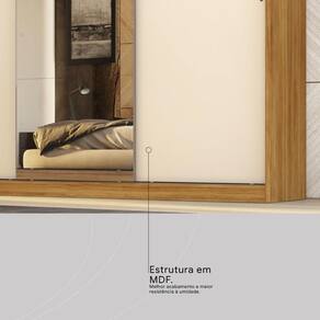 O Guarda-Roupa Dalila é a opção perfeita para o seu quarto. Com uma distribuição interna incrível, acomoda facilmente roupas de verão e inverno, calças e qualquer peça que você deseje pendurar nos três cabideiros. As roupas íntimas também tem o seu lugar afinal são quatro gavetas para manter tudo muito bem organizado. E se precisar de mais espaço, o Guarda-Roupa Dalila conta com um amplo maleiro para armazenar travesseiros, roupas de cama e o seu cobertor favorito. Além disso, oferece espaços internos específicos para sapatos de diferentes alturas. E a praticidade não para por aí, as portas de correr proporcionam economia de espaço ao abrir e fechar. Quanto ao design, as linhas retas do Guarda-Roupa Dalila podem complementar perfeitamente um ambiente já decorado ou adicionar um toque de modernidade. Se busca funcionalidade aliada à beleza, prepare-se, pois o espelho na porta central. Desfrute de uma rotina mais organizada, leve e bela com o Guarda-Roupa Dalila.