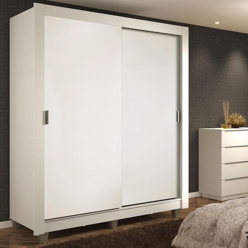 - O guarda-roupa possui duas portas de correr de deslizamento suave com trilhos em alumínio.