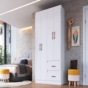 O Roupeiro é produzido em material MDP, possui 4 portas com puxadores em ABS, 2 gavetas com corrediças metálicas, 1 cabideiros em madeira, para deixar tudo muito bem organizado. Acabamento: Pintura UV Ambiente Principal: Quarto Complexidade da Montagem: Baixa: pode ser montado por uma pessoa sozinha Cor: Branco Cor do Produto: Branco Escala de Brilho: Brilhante Itens Inclusos: 1 Guarda Roupa, Kit Ferragens e Manual de Montagem Linha ou Coleção: Classic Manual de Montagem e Instalação: https://product-hub-prd.madeiramadeira.com.br/891789/documents/dc830053-1bc6-4f46-a89a-5e631a0e64901780639rp55400.pdf Material Principal: MDP Necessita Montagem: Sim Origem do Produto: Nacional Peso: 47,4 kg Recomendações de Uso, Manutenção e Limpeza: Limpar com flanela levemente umedecida Sistema de Montagem: Parafusos Suporta Até (kg): 25 kg