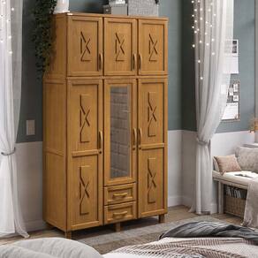 O Guarda-Roupa Dallas oferece elegância e funcionalidade para seu quarto. Fabricado em madeira maciça de Pinus com acabamento em Carvalho Acetinado, conta com maleiro integrado, 2 gavetas externas com corrediças metálicas, 1 porta com espelho, porta com aplique, cabideiro e puxadores de madeira. Com ótimo aproveitamento interno, é ideal para manter suas roupas e acessórios sempre organizados com estilo.