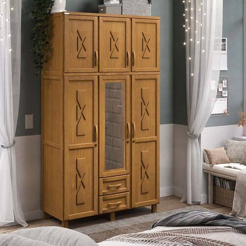 Guarda-Roupa Dallas com 6 Portas, Maleiro e 2 Gavetas em Madeira Pinus Carvalho Acetinado - Tozzeto