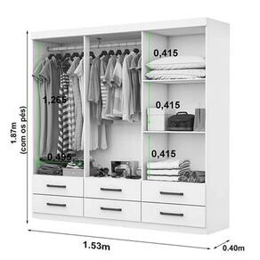 Procurando um guarda-roupa espaçoso para organizar as roupas do casal? Então o Guarda Roupa Dallas Casal 6 Portas 6 Gavetas Carioca é a escolha perfeita para você! Com um toque de estilo, este guarda-roupa oferece tanto espaço de armazenamento que você vai se perguntar se é um móvel ou um portal para o universo das roupas.