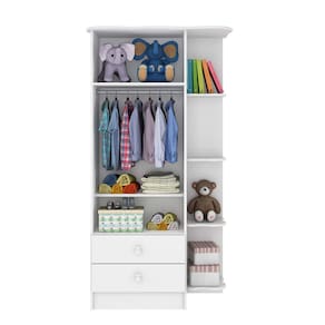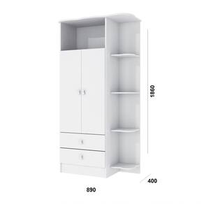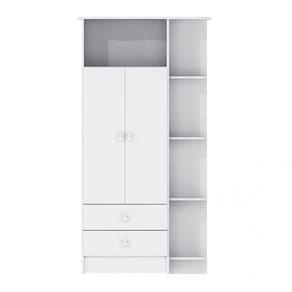 Guarda-Roupa de Bebê 2 Portas em MDP BP branco 15 mm (nas laterais e prateleiras), acabamento laca (15mm) nas portas e frentes de gaveta. Gavetas com corrediça telescópica, dobradiças metálicas. Indicado para quarto de bebês.