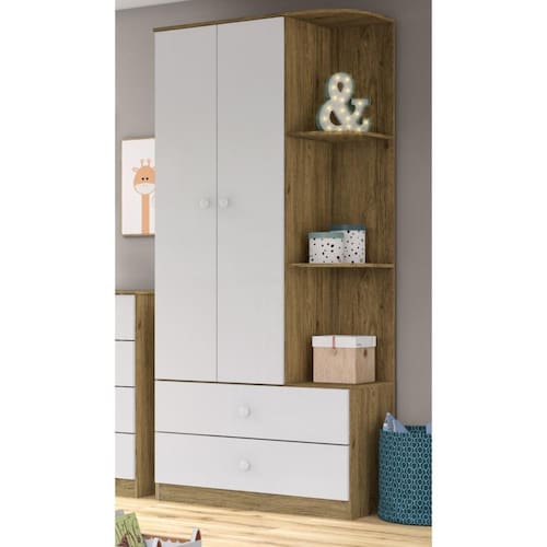 Guarda Roupa de Bebê 2 Portas 2 Gavetas Sonho Encantado Espresso Móveis Rústico/Branco. o Guarda Roupas Sonho Encantado é produzido em MDP com 1.800 mm de Altura, 800 mm de Largura e 400 mm de Profundidade. Gavetas com corrediças metálicas que permitem um deslize mais seguro e suave, Puxadores em ABS, cabideiro em alumínio e com cantoneira decorativa Ean: 7909903167090