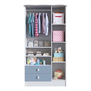 Guarda Roupa de Bebê 3 Portas 2 Gavetas em MDP BP branco 15 mm (nas laterais e prateleiras), acabamento laca nas portas e frentes de gaveta. Portas com dobradiças metálicas/Gavetas com corrediça telescópica. Ideal para uso em quarto infantil ou de bebê. Acabamento da Gaveta: Laca Acabamento da Porta: Laca Acabamento da Prateleira: Finish Foil Altura: 186 cm Ambiente: Quarto de Bebê Complexidade da Montagem: Média: pode ser montado por mais de uma pessoa e/ou necessite de maior conhecimento para montagem Cr: Branco/Azul Cr: Branco/Azul Cr Interna: Branco Escala de Brilho: Brilhante Escala de Brilho da Gaveta: Brilhante Escala de Brilho da Prateleira: Fosco Estilo: Moderno Gaveta com Chave: Não Itens Inclusos: 1 Guarda Roupa e Manual de Montagem. Largura: 92,5 cm Linha ou Coleção: Baby Material da Gaveta: MDP Material da Porta: MDP Material da Prateleira: MDP Material do Puxador da Porta: Plástico Material Principal: MDP Necessita Montagem: Sim Peso: 57 kg Peso Máximo por Gaveta: 2 kg Possui Cabideiros: 01 Possui Calceiros: Não Possui Espelho: Não Possui Gavetas: 02 Possui Organizador de Gaveta: Não Possui Pés: Não Possui Portas: 03 Possui Prateleiras: 05 Profundidade: 40 cm Recomendações de Uso, Manutenção e Limpeza: Recomendado pano macio para limpezas do dia-a-dia, e pano úmido para tirar a poeira. Sapatas Niveladoras: Não Sistema de Montagem: Parafusos e cavilhas. Tipo de Corrediça da Gaveta: Metálica Telescópica Tipo de Dobradiça/Corrediça da Porta: Metálica Tipo de Gaveta: Externa Tipo de Guarda-Roupa: Bebê Tipo de Porta: Bater Tipo de Puxador da Porta: Externo