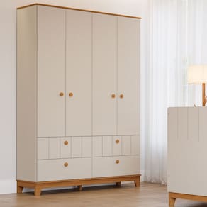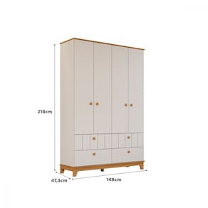 O Guarda-Roupa de Bebê Liza combina durabilidade e estilo para o quarto do seu pequeno. Equipado com 4 portas, 4 gavetas espaçosas e prateleiras internas, proporciona amplo espaço para organizar roupas, acessórios e brinquedos. As dobradiças metálicas e corrediças telescópicas garantem suavidade e durabilidade no uso diário. Com capacidade para suportar até 3 kg por gaveta, este guarda-roupa é a escolha ideal para manter o quarto do seu filho organizado e funcional por muito tempo.