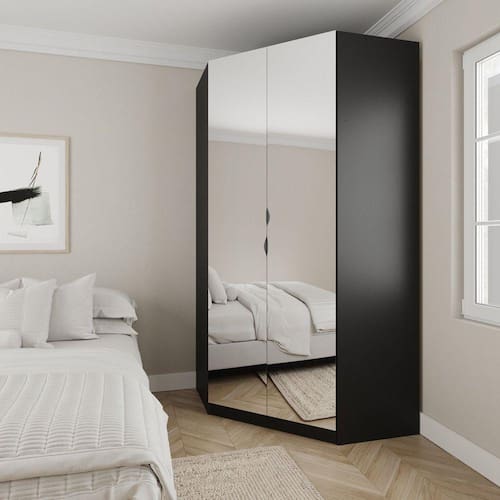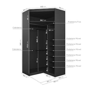 Guarda Roupa de Canto Closet com 6 Prateleiras e Portas de Espelho Modular Hera Cabecasa Madeiramade Preto