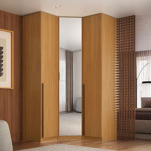 Guarda-roupa de Canto com Espelho 3 Portas Altezza Freijó - Marrom