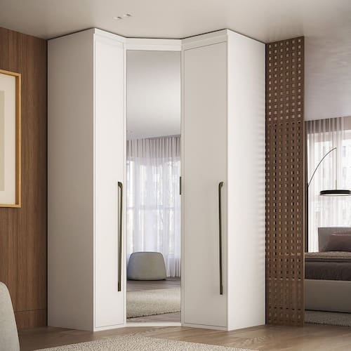 O Guarda-Roupa de Canto Obliquo de 3 portas Lotus é para você que quer aproveitar aquele cantinho do quarto, com um móvel de qualidade, com design sofisticado e com ótima divisão interna. Sem contar que ele pode ser complementado por toda a linha modulada Belmax.