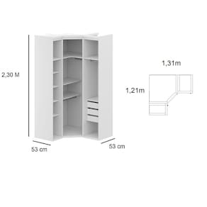 OBS: O guarda roupa pode ser montado tanto para a direita como esquerda no canto da parede.