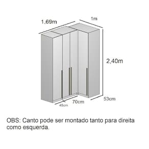 O Guarda Roupa de Canto Reto 4 portas Altezza Trend é para você que quer aproveitar aquele cantinho do quarto, com um móvel de qualidade, com design sofisticado e com ótima divisão interna.