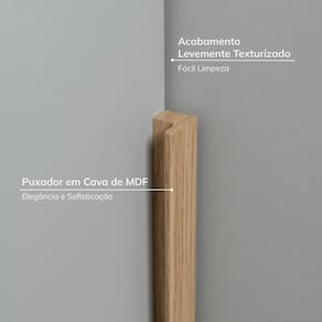 Fabricado em MDP oferece uma base sólida e resistente, enquanto o MDF dos puxadores proporciona uma superfície suave e usinagem personalizada sofisticada. Essa combinação única garante não apenas durabilidade excepcional, mas também uma estética luxuosa que traz identidade e elegância ao seu espaço.