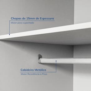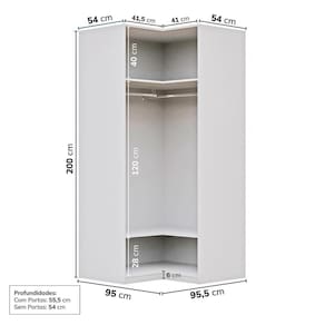 Guarda-roupa de Canto Reto Modular 95cm sem Portas com Cabideiros Jade Cabecasa Madeiramadeira Branco. O Guarda Roupa de Canto Reto Modular 95cm Sem Portas Jade CabeCasa foi desenvolvido para trazer a experiência de ter seu guarda roupas planejado de uma forma descomplicada, flexível e adaptável ao seu espaço, estilo e investimento. Além disso, possui um maleiro espaçoso, dois cabideiros metálico e uma prateleira inferior, assim você terá espaço para organizar suas roupas e acessórios de forma personalizada. Tenha durabilidade, flexibilidade e estilo em um único móvel. Recomendações de Uso, Manutenção e Limpeza: Para limpeza utilize pano macio, seco ou ligeiramente umedecido com água. Não utilize sapólios, polidores e ou produtos que contenham carga abrasiva, para evitar danos ao produto. Evitar que o móvel fique exposto a luz solar direta, ou em ambientes de umidade e calor excessivo. Não colocar carga excessiva de peso nas gavetas e prateleiras, para evitar acidentes ou danos ao produto. O móvel deverá ficar nivelado, desta forma, as gavetas e as portas terão o bom funcionamento, evite arrastá-los, isso pode danificar o móvel.