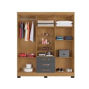 Com um amplo espaço interno, você pode organizar suas roupas, acessórios e objetos pessoais de maneira eficiente. O cabideiro metálico e as corrediças e dobradiças de metal tornam o manuseio suave e durável, proporcionando uma experiência agradável ao utilizar o guarda-roupa.