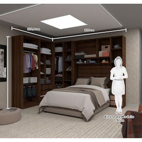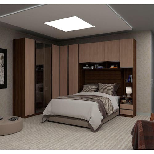 O Guarda Roupa de Canto aproveita aquele espaço que parece sem utilidade, a Linha Modulada Prime foi desenvolvida adequando-se a vários espaços, de grandes a pequenos, pois seus módulos possuem 236 cm de altura oferecendo divisórias para atender diversas necessidades, com profundidade de 56cm possibilitando acomodar roupas sem amassar, possui 3 amplas gavetas. A Ponte Modulada possui 145cm, para utilização com colchão Casal de 138cm de largura. Ainda conta com armários, Mesa de Cabeceira altos com prateleiras e 2 gavetas. Os módulos são peças individuais o que permite montar e acomodar da forma que melhor se adequar ao espaço disponível. Produzido em MDP de 15mm, dobradiças reforçadas em 35mm e corrediças telescópicas em todas as gavetas que possibilitam abertura total. Para esta proposta usamos as medidas de parede: Lado Cabeceira 323cm X 220,2cm.