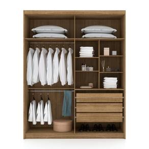 Feito em MDF/ 3 gavetas com corrediças telescópicas,4 Portas, 6 prateleiras, 3 nichos e 2 cabideiros.