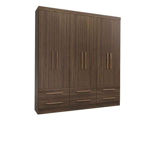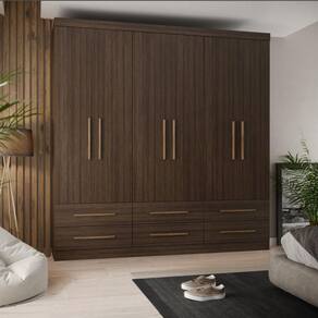 Caracteristicas: - Estrutura em MDP 15 e 12 milimetros - 6 portas e 6 gavetas - Corredica telescopica - Cabideiro Metalico oblongo - Puxadores topazio em MDF de 400 milimetros - Acabamento de Pintura: Capuccino fosco - Medida interna util da gaveta: Largura 0,69 x Profundidade 0,34 - Peso suportado por gavetas: 5 kilos - Nao acompanha pes - Nao acompanha espelho - Quantidade de prateleiras: 11 - Peso suportado por prateleiras: 5 kilos - Garantia de 12 meses