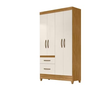 Guarda roupas solteiro Madri 4 portas com 2 gavetas, corrediças metálicas, interna com prateleiras e bastão cabideiro, espaço para acomodar sapatos, pés em PVC, puxadores plásticos na cor bronze, impressão UV.