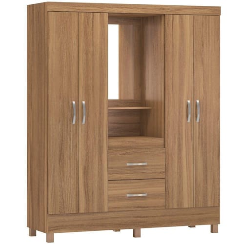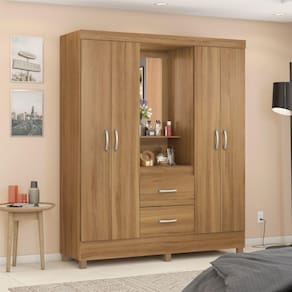 Descrição: O Guarda Roupa Lord da Demóbile possui acabamento em impressão de alta qualidade com pintura UV que garante maior resistência ao móvel. Ele vem com espelho central que vai dar aquele toque de requinte ao seu quarto, possui 2 gavetas externas com deslize perfeito e pés em PVC de série. Tem 4 portas convencionais e 3 prateleiras internas para acomodar seus pertences de forma segura, conta também com espaço para você por seus objetos bem ao alcance de suas mãos. Feito em MDP, sua cor neutra dá um ar de sobriedade ao produto.