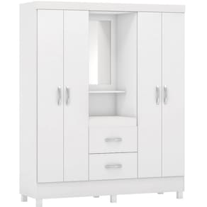 Descrição: O Guarda Roupa Lord da Demóbile possui acabamento em impressão de alta qualidade com pintura UV que garante maior resistência ao móvel. Ele vem com espelho central que vai dar aquele toque de requinte ao seu quarto, possui 2 gavetas externas com deslize perfeito e pés em PVC de série. Tem 4 portas convencionais e 3 prateleiras internas para acomodar seus pertences de forma segura, conta também com espaço para você por seus objetos bem ao alcance de suas mãos. Feito em MDP, sua cor neutra dá um ar de sobriedade ao produto.