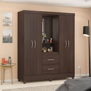 O Guarda Roupa Lord da Demóbile possui acabamento em impressão de alta qualidade com pintura UV que garante maior resistência ao móvel. Ele vem com espelho central que vai dar aquele toque de requinte ao seu quarto, possui 2 gavetas externas com deslize perfeito e pés em PVC de série. Tem 4 portas convencionais e 3 prateleiras internas para acomodar seus pertences de forma segura, conta também com espaço para você por seus objetos bem ao alcance de suas mãos. Feito em MDP, sua cor neutra dá um ar de sobriedade ao produto.