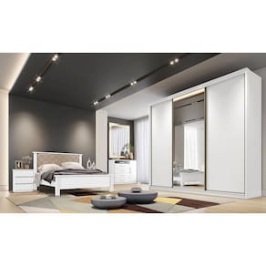 Caracteristicas: Tipo de pintura: UV Origem do produto: Nacional Ambiente principal: Quarto Material principal: MDF Possui portas: 03 Possui espelho: Sim -com pelicula protetora- Possui prateleiras: 08 Possui gavetas: 06 Possui chave e tranca: Nao Tipo de portas: Correr Tipo de puxador: Aluminio Complexidade da montagem: Medio Sistema de montagem: Parafusos e cavilhas Possui pes: Sapatas de plastico Rodizio com trava: Nao Altura dos pes: Nao Material dos pes: PVC