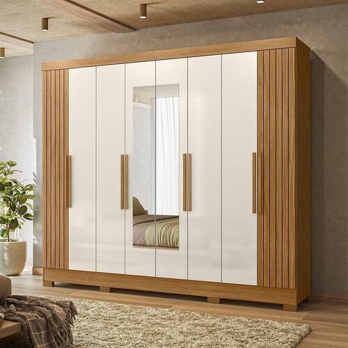 Com oito portas de giro e quatro gavetas espaçosas, o Guarda-Roupa Diplomata une