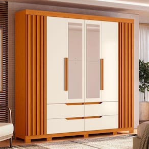 Guarda Roupa Doble Casal 6 Portas Com Espelho Albatroz Cinamomo/off White Guarda Roupa Doble Casal 6 Portas com Espelho Albatroz Caracteristicas do Produto: O Guarda Roupa Doble Casal 6 Portas com Espelho da marca Albatroz e a solucao ideal para quem busca funcionalidade e estilo em um unico movel. Com dimensoes generosas de 240 cm de largura e 230 cm de altura, ele oferece amplo espaco para organizar suas roupas e acessorios. Suas seis portas de dobradia garantem facil acesso ao conteudo, enquanto as quatro gavetas proporcionam um pratico para itens menores.