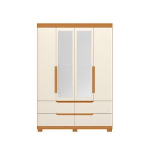 Produto: Guarda Roupa Doble com Espelho Cor: Cinamomo/Off White 04 Gavetas Com Corrediças Telescópicas, Puxadores De Mdf Revestidos, Cabideiro Em Alumínio, Pés Inclusos, Interna 100% Na Cor Do Produto. Escala de Brilho: Fosco/Brilho Altura (m): 2,3 Largura (m): 1,6 Profundidade (m): 0,47 Peso (kg): 109,95 Material: MDP Acabamento: Pintura Uv Material do Puxador: Mdf Revestido Tipo de Cabideiro: Alumínio Quantidade de Gavetas: 4 - Tipo de Corrediça: Telescópicas Quantidade de Portas: 4 - Tipo de Porta: Bater Quantidade de Prateleiras: 5 Rodízios: Não Quantidade de Pés: 6 - Material dos Pés: ABS Necessita Montagem: SIM Espelho: Kit 04 Espelhos 0,70 X 0,30 M Cada - Parafusados Na Porta Manutenção: Limpar Com Flanela Ou Pano Macio Seco, Não Utilizar Produtos Abrasivos, Desengordurantes, Álcool Ou Solvente. Não Expor O Produto Diretamente À Luz Solar E À Umidade. Garantia: 3 Meses