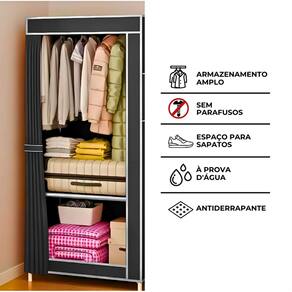 Fácil de Montar e Limpar: Sem complicação! A estrutura é simples de montar, sem a necessidade de ferramentas complexas. E para a limpeza, basta remover a capa de tecido e lavá-la, mantendo o guarda-roupa sempre em perfeito estado.