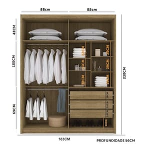 O guarda-roupa Dubai 4 portas e 3 gavetas é uma peça sofisticada, ideal para quem busca aliar estilo e praticidade ao ambiente. Produzido 100% em MDF, um material reconhecido por sua alta durabilidade e resistência, o móvel conta com estrutura robusta de 15mm, garantindo maior firmeza e longevidade. Suas portas amplas estão equipadas com dobradiças de efeito slow motion, que proporcionam um fechamento suave e silencioso, evitando impactos e preservando o móvel por mais tempo. As gavetas, com corrediças telescópicas, deslizam suavemente, oferecendo uma experiência de uso confortável e segura. Com design elegante e funcional, o Dubai Majestic é perfeito para otimizar o espaço, organizando roupas e objetos com eficiência, além de agregar um toque moderno ao quarto.